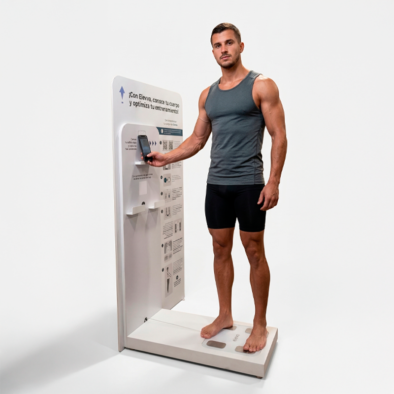 Análisis segmentario de masa muscular, porcentaje de grasa corporal, hidratación y metabolismo basal. Diagnósticos de grado clínico cargados instantáneamente al perfil del usuario.