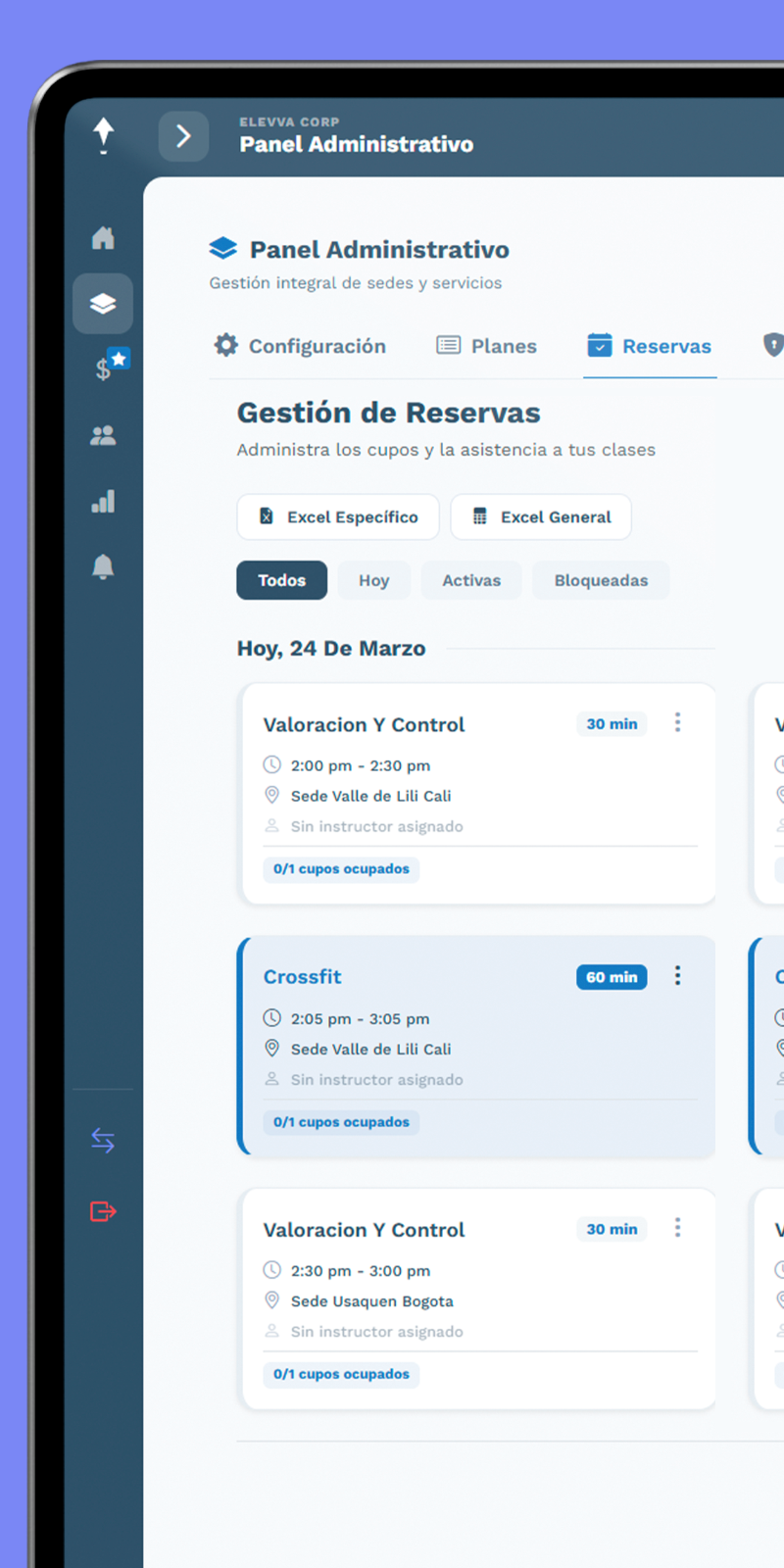 Administre reservas y disponibilidad en tiempo real, asegurando que cada metro cuadrado de su gimnasio sea rentable.