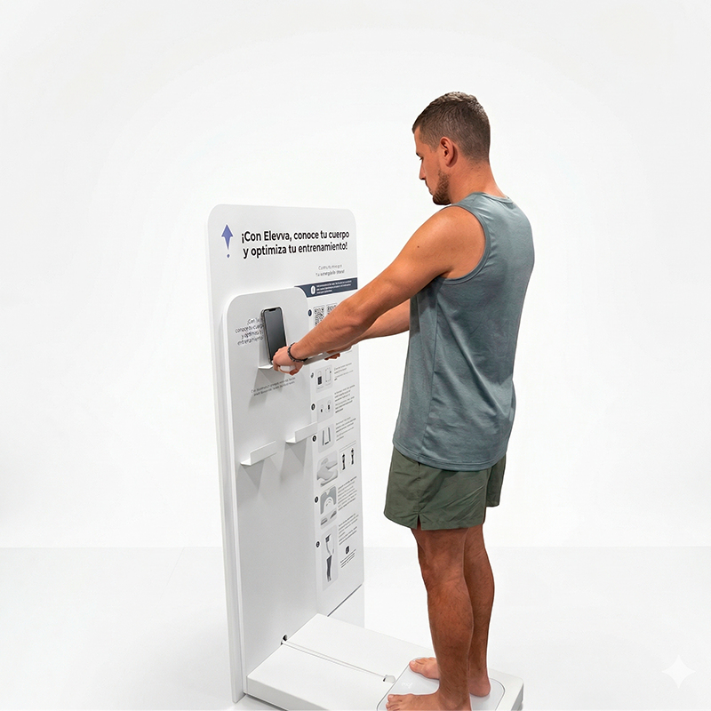 Nuestra báscula de bioimpendencia ELEVVA proporciona mediciones detalladas de la composición corporal, incluyendo el porcentaje de grasa corporal, masa muscular entre otros, brindando además información valiosa sobre cómo el entrenamiento afecta la composición corporal, ayudando a adaptar las rutinas de ejercicio y la ingesta de alimentos para alcanzar metas específicas que mejoren el desempeño del atleta.