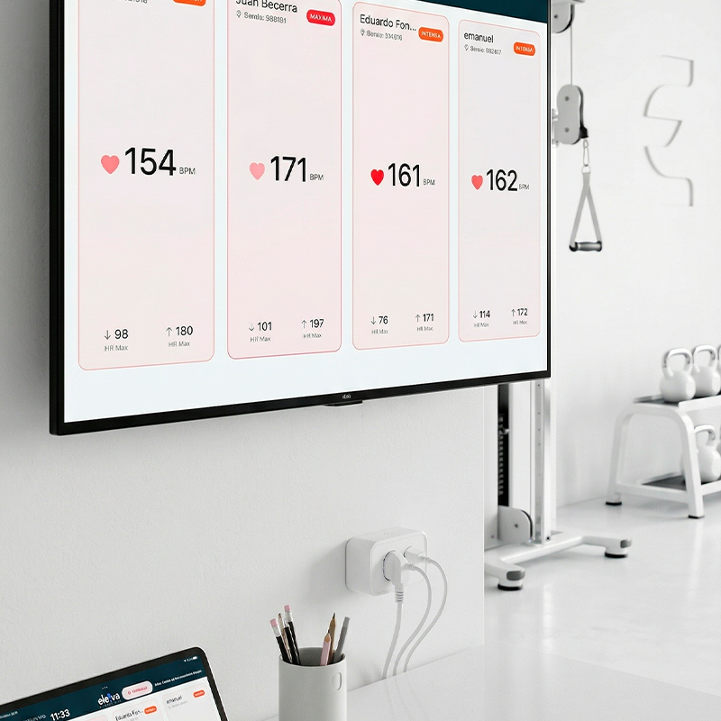 Sincroniza instantáneamente cada latido con la App de Elevva y el panel administrativo, creando un historial evolutivo que mantiene la motivación del atleta.